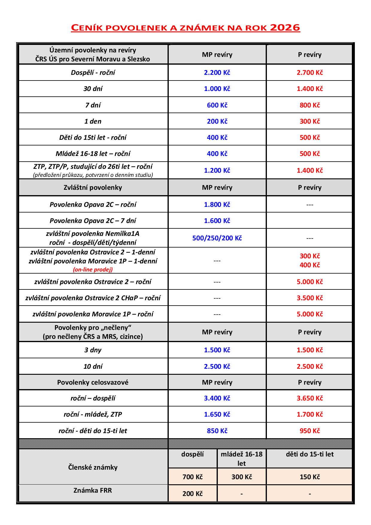 k rybolovu podmíněn úhradou příspěvku do FONDU ROZVOJE REVÍRŮ Územního svazu ČRS ve výši 200,- Kč.